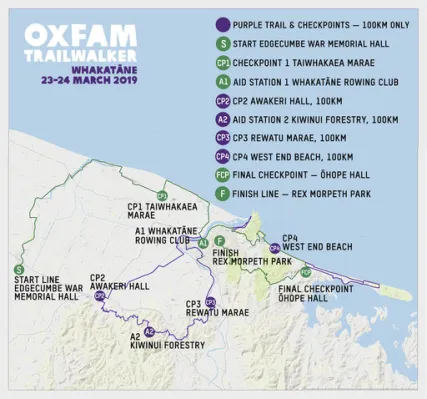Edgecumbe is to host the start line for Oxfam Trailwalker 2019 – part of the annual course ‘refresh’ process for the 100-kilometre the event, which was first held in Whakatāne in 2016.